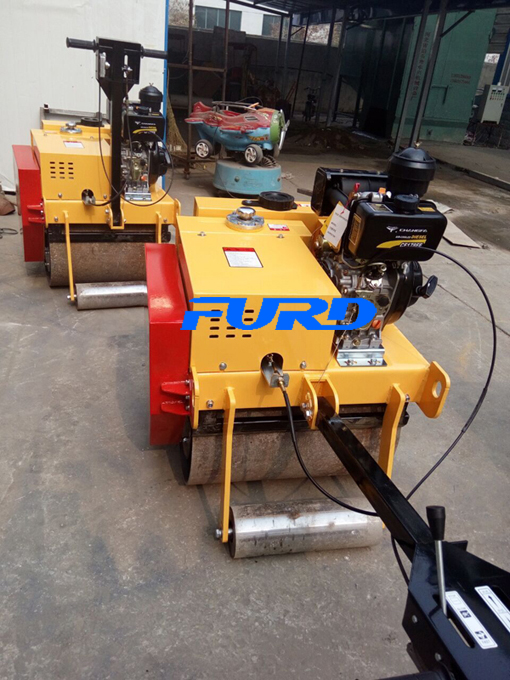 手扶壓路機、座駕壓路機、路面開槽機開出廠房,準備發(fā)貨。
