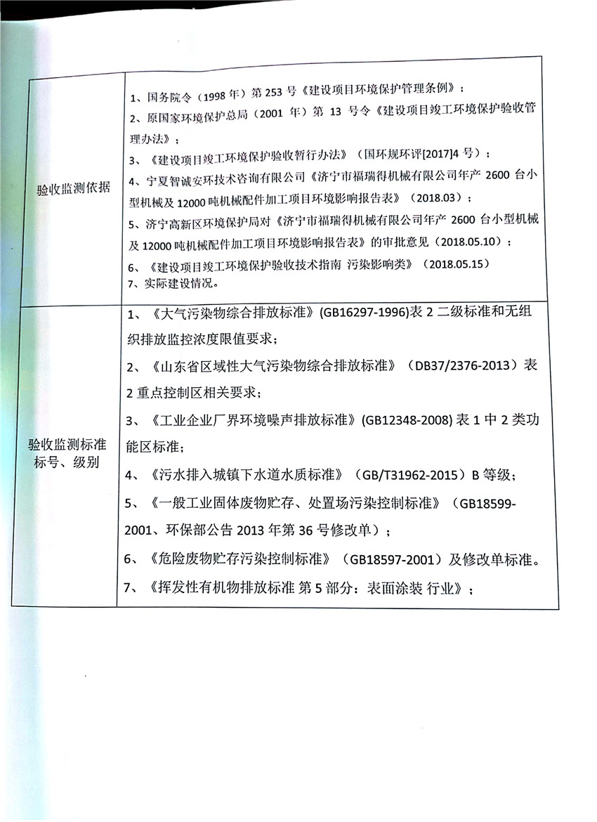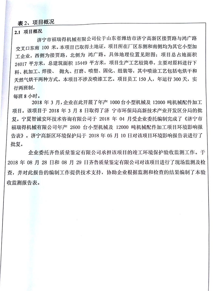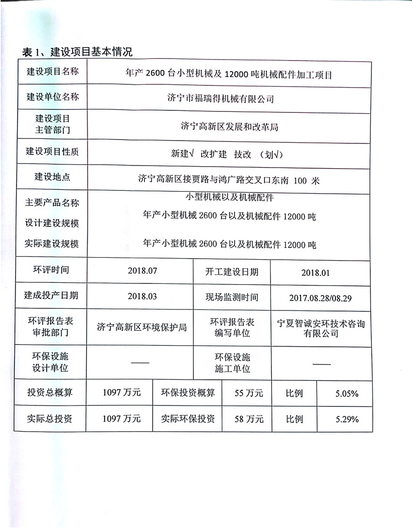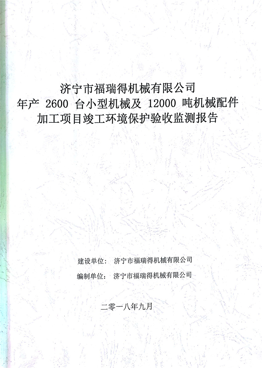 濟(jì)寧市福瑞得機(jī)械有限公司年產(chǎn)2600臺小型機(jī)械及12000噸機(jī)械配件加工項(xiàng)目(廢氣、廢水)竣