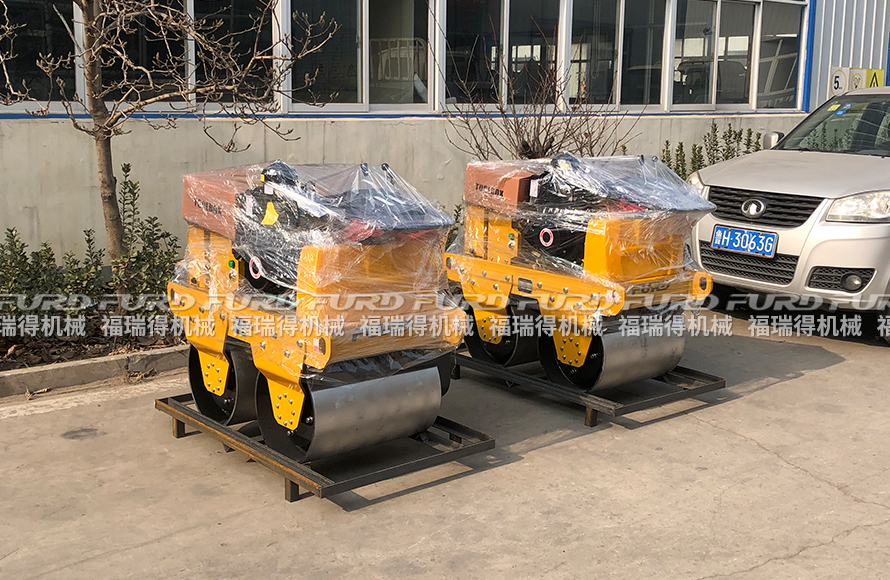 1月26日 福瑞得機(jī)械5臺手扶雙輪壓路機(jī)打包裝箱出口南非。