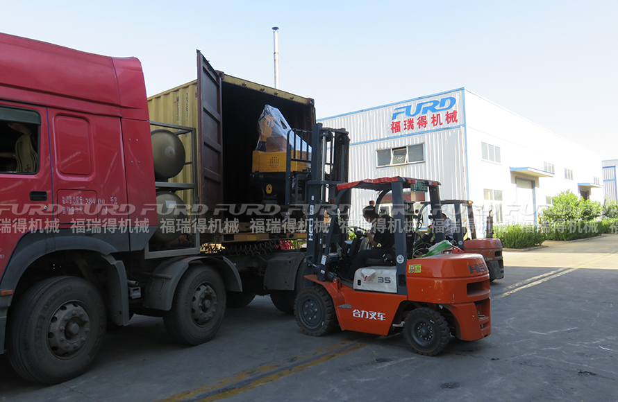 6月5日,福瑞得機械12臺手扶雙鋼輪壓路機打包裝柜出口澳大利亞。