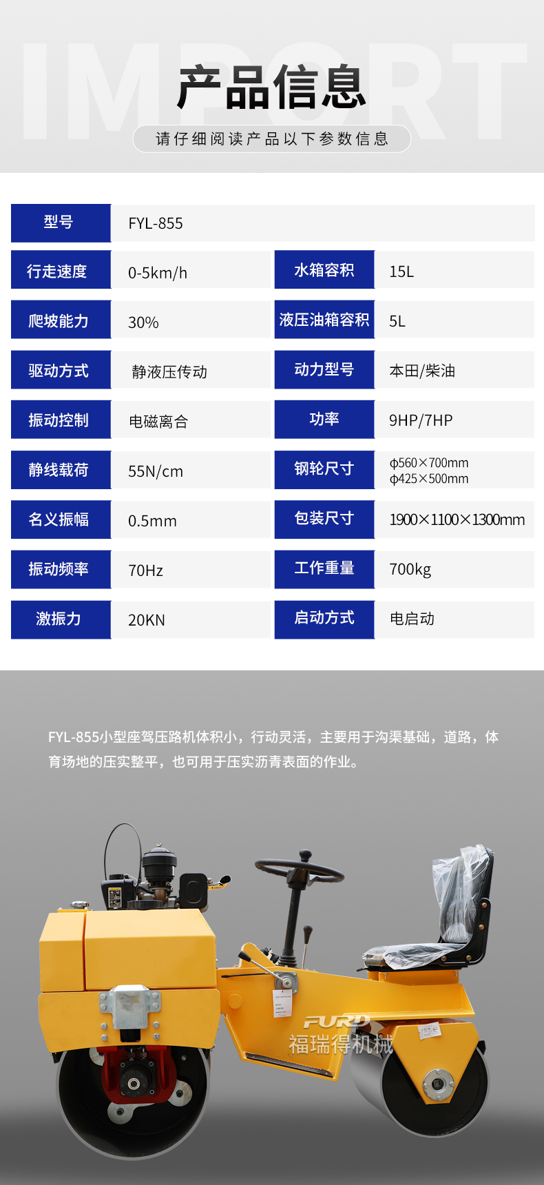 FYL-855 小型液壓振動(dòng)壓路機(jī)