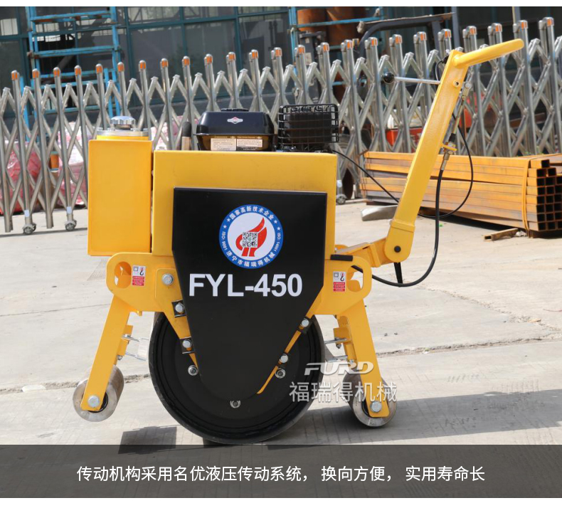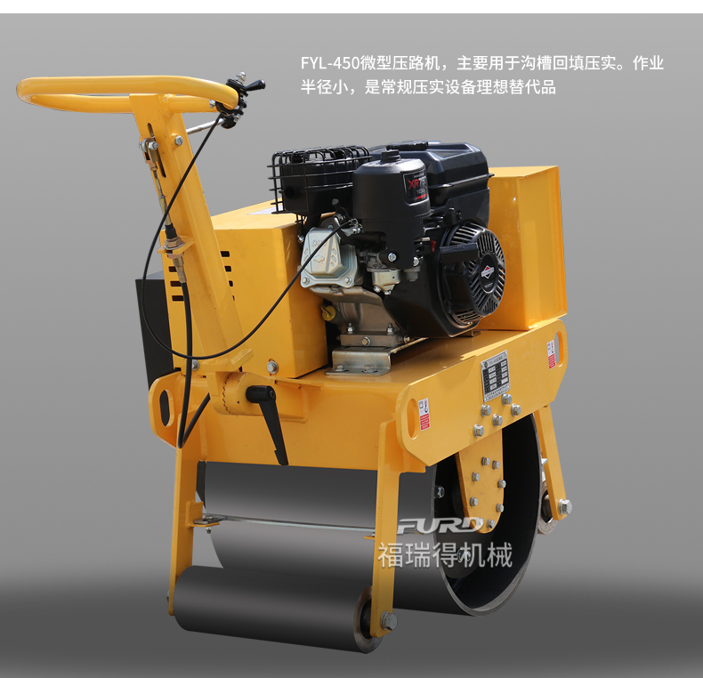 主要用于溝渠回填壓實,F(xiàn)YL-450壓路機(jī)可以替代平板夯。