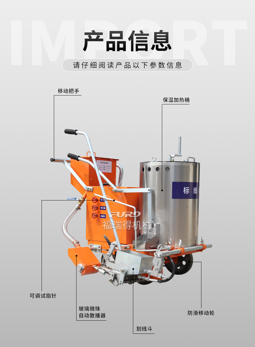 應(yīng)用于道路、高速公路、停車(chē)場(chǎng)、廣場(chǎng)和跑道的在平整地面上劃出不同約速、指引和警示等規(guī)則限制標(biāo)志的路面施工機(jī)械。