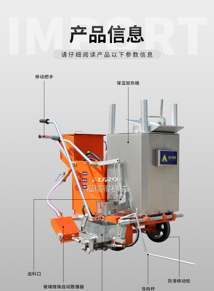 應(yīng)用于道路、高速公路、停車場、廣場和跑道的在平整地面上劃出不同約速、指引和警示等規(guī)則限制標(biāo)志的路面施工機械。