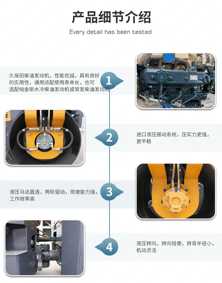 FYL-1200T為橡膠輪胎振動壓路機(jī),該壓路機(jī)前有鋼輪,后有橡膠輪,結(jié)合鋼輪和輪胎壓路機(jī)的優(yōu)點(diǎn),具有更高的工作效率。